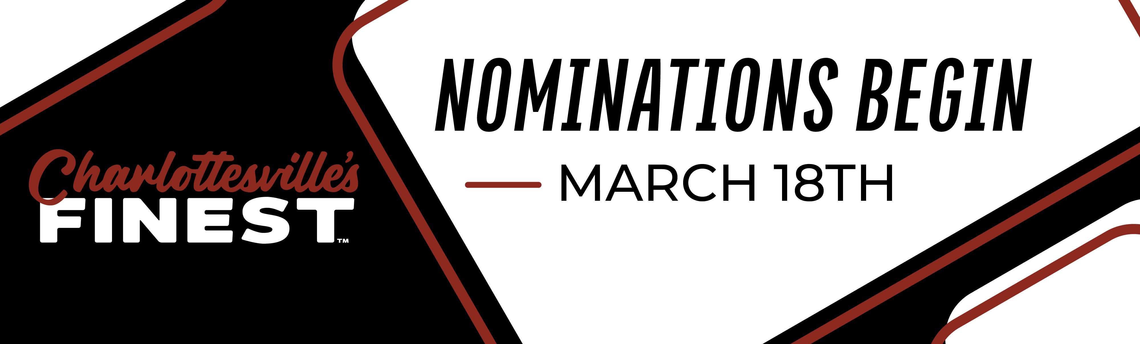 Nominations starts in ... Submit Your Nomination! Voting starts in ... Voting Starts Here! Results will be published in ... Your Charlottesville's Finest 2026 Winners The results will be published Wednesday, July 29th, 2026 at 12:00pm